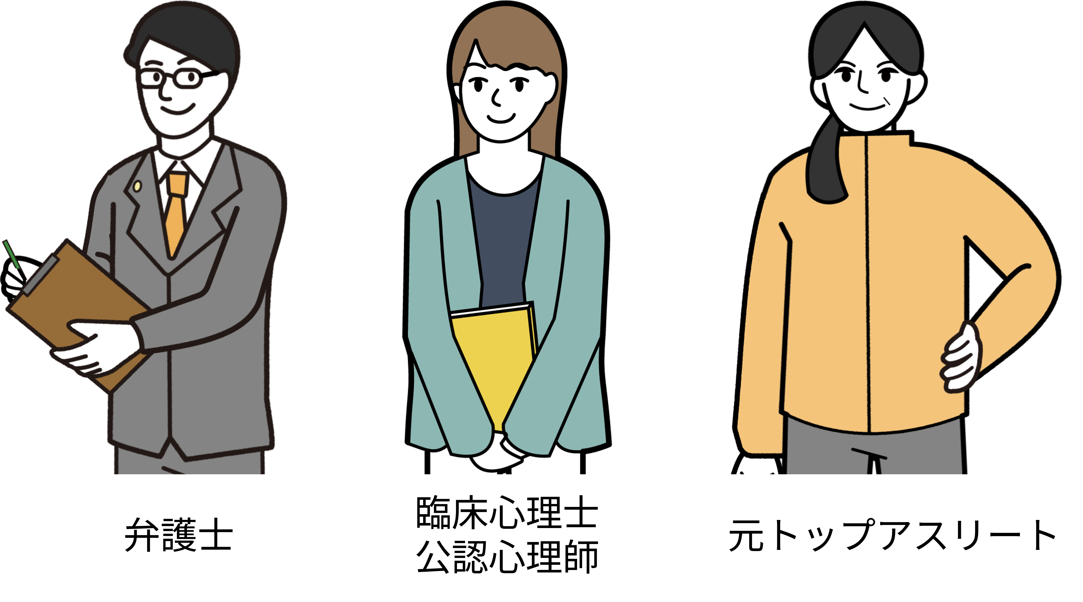 ※相談員は、スポーツ界と関わりの深い(弁護士、臨床心理士・公認心理師、元トップアスリート等)から選任します。 |