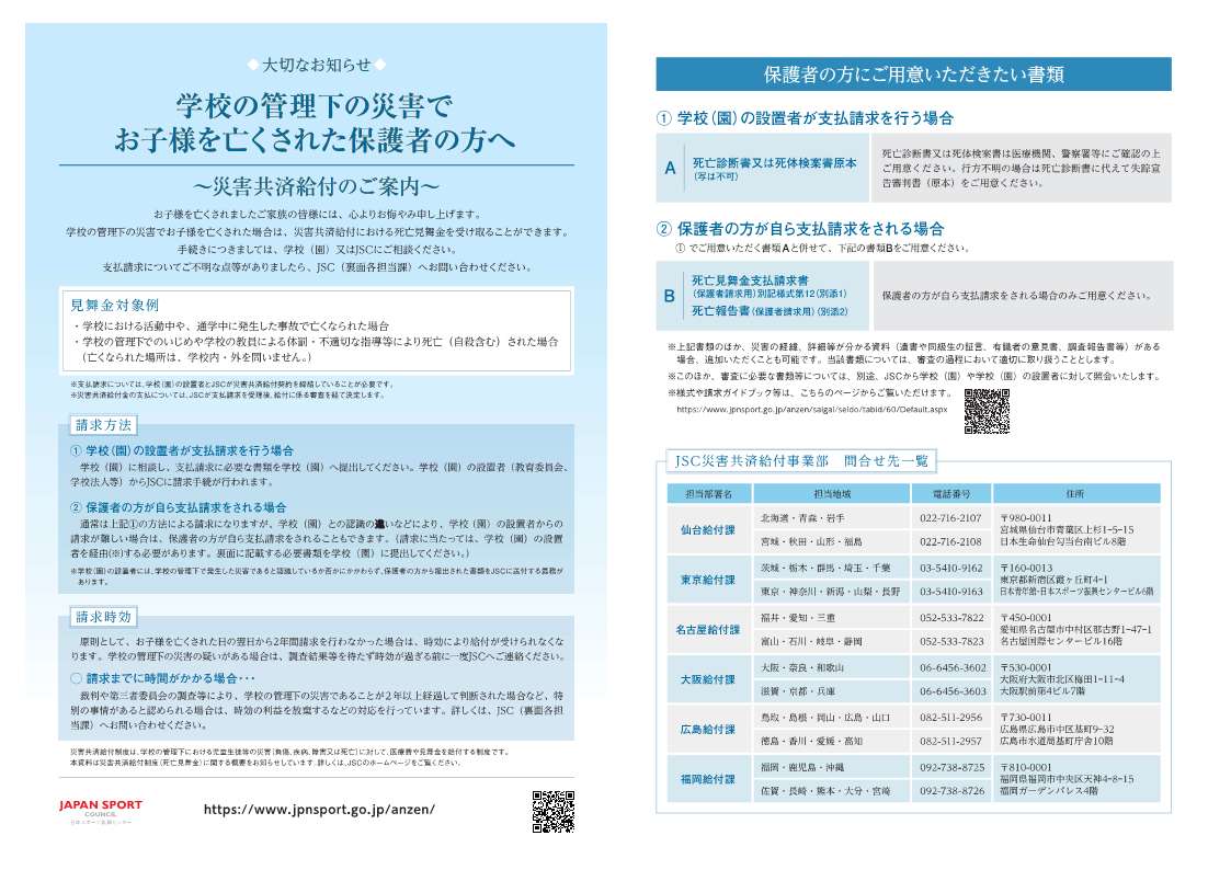 【お知らせ】学校の管理下の災害でお子様を亡くされた保護者の方へ[PDF:3MB]