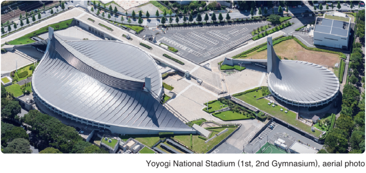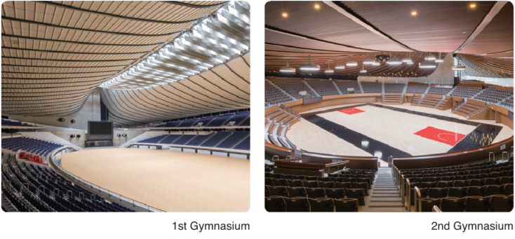 Yoyogi National Stadium was built for the Tokyo 1964 Olympic Games. The 1st Gymnasium structures a suspended roof with high tensile strength reinforcement, also, the 2nd Gymnasium features cone-shaped ceiling in a magnificent form of a bowl, having a high international reputation for their elegant shapes. In 2021, it was designated in Japan as an important cultural property. Currently, the Gymnasiums are used as venues for various sports as well as cultural events. The 1st Gymnasium was also used as a venue for the Tokyo 2020 Olympic and Paralympic Games in 2021.