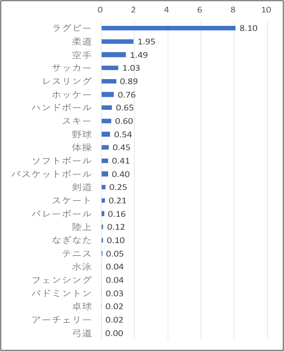 図 24競技における部員1,000人あたりのスポーツ関連脳振盪発生割合